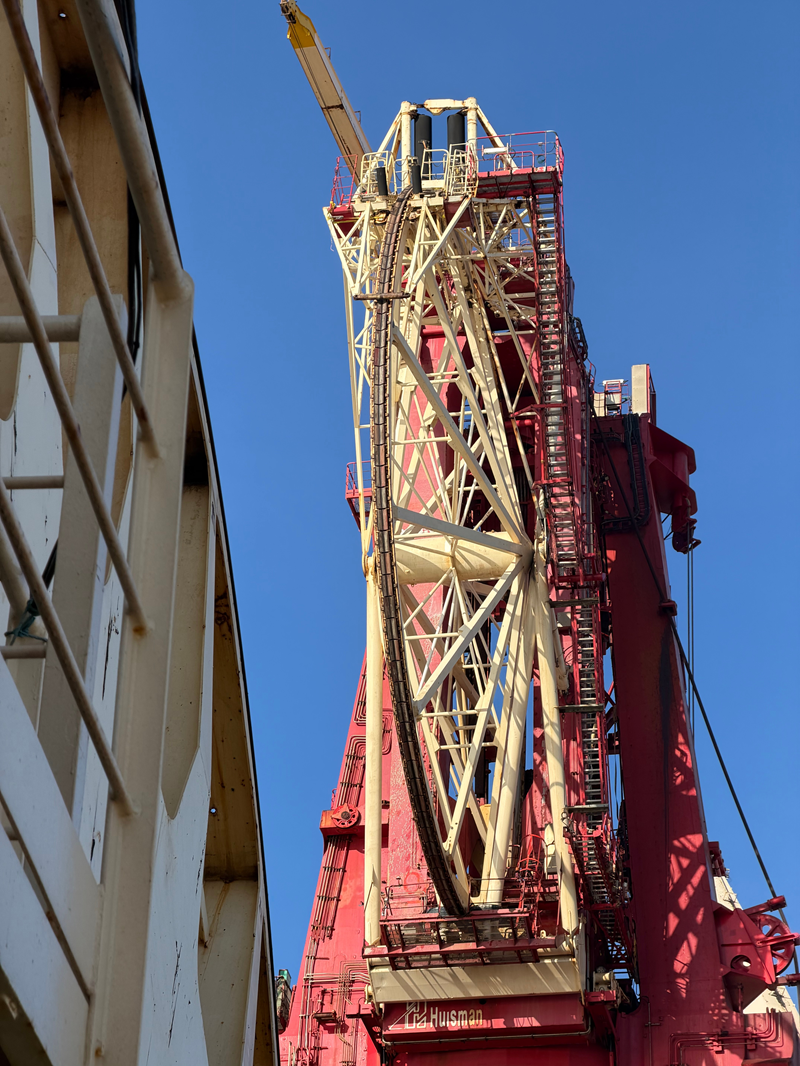 The primary scope involved critical structural repairs to the vessel’s Main Aligner Wheel (pictured above), targeting the structural support bracings and access stair supports.